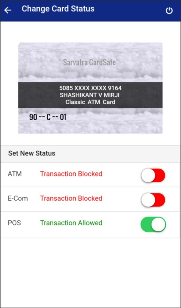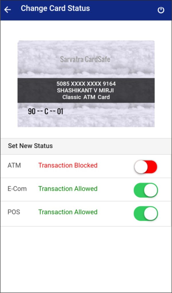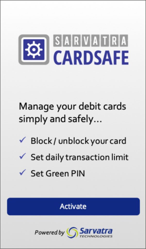 Welcome to the new Sarvatra CardSafe Application. With this application Bank customers control card related activities including Green PIN.