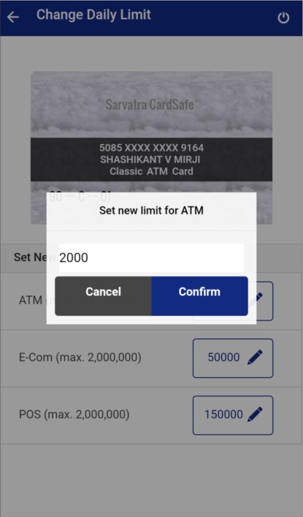 After editing transaction limit, user needs to press Confirm button. If you select Confirm, then new limit will get set. If you click on Cancel, then old limit will be continued.