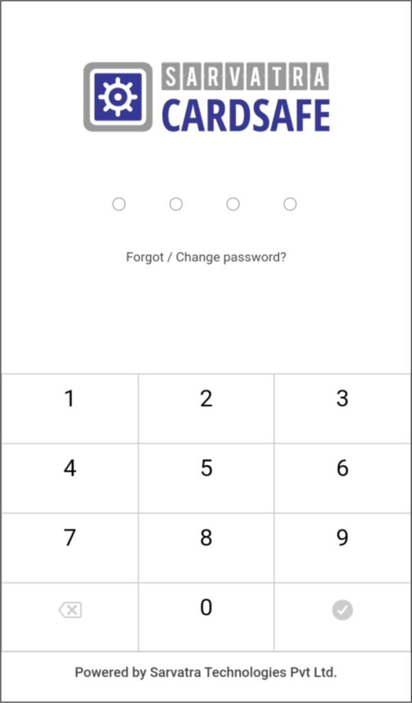 After clicking on done cardsafe application will get redirected to enter password screen. Enter app password which you have set.